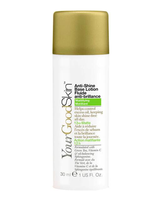 La Loción Base Anti-Brillos de Your Good Skin proporciona 12 horas de efecto mate, ayudando a regular el exceso de sebo y manteniendo la piel sin brillos durante todo el día. Está formulada con un exclusivo complejo antioxidante que incluye Vitamina C, Té verde, Vitamina E y Lipochroman. También contiene Bisabolol y Pantenol, que poseen propiedades calmantes y antiinflamatorias, así como Esfinganina para reducir los niveles de sebo. Es un producto libre de parabenos y sin fragancias añadidas, testado dermatológicamente.